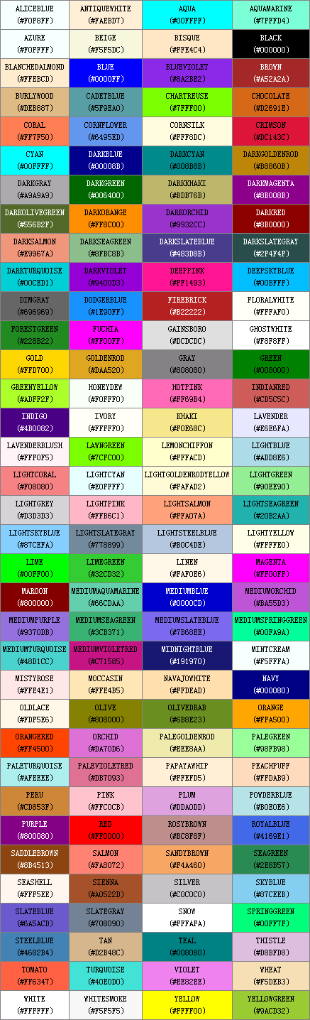 >> UBB 標(biāo)簽中所支持的顏色表